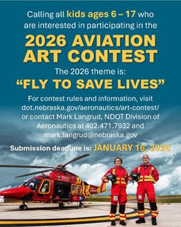 NDOT's Aeronautics Division is inviting young artists to take their creativity to new heights through the 2026 International Aviation Art Contest. Entries are due by Jan. 16, 2026.
